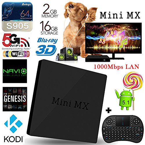 [2016 New Arrivals]SEGURO® 1000M LAN KODI 16.0 Amlogic S905 Quad Core Mini MX 2G/16G Android 5.1 TV BOX H.264/H.265 Dual Band2.4G/5G WiFi Bluetooth 4.0 Fully Load eMMC Flash Google Smart TV Kodi Box (Wireless Keyboard)