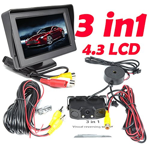 BW New 3 in 1 Sound Alarm CCD HD Car Reverse Backup LED Rear View Camera Parking Video Radar System + 4.3 Inch TFT-LCD Car Rearview Monitor