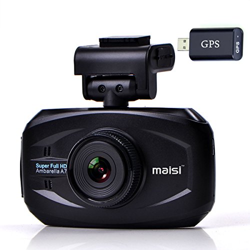 MAISI SMART Car Recorder with GPS, HD Color WDR Dashboard Camcorder, Black (170 Wide Angle, Auto Ignition/Motion/Crash Detection, Seamless Loop Recording with G-sensor, Smart Speed/Deviation Warning)