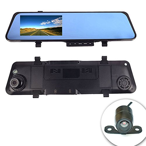 niceEshop(TM) 4.3" Dual Lens Car Dash Cam 1080P Video Recorder Rear View Mirror Camera with G-Sensor (Black)