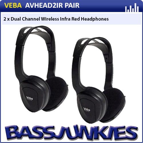 Veba AVHEAD2IR - Dual Channel Infrared IR Wireless Car Headphones for Roof Mount & Headrest Monitors (sold in pairs)