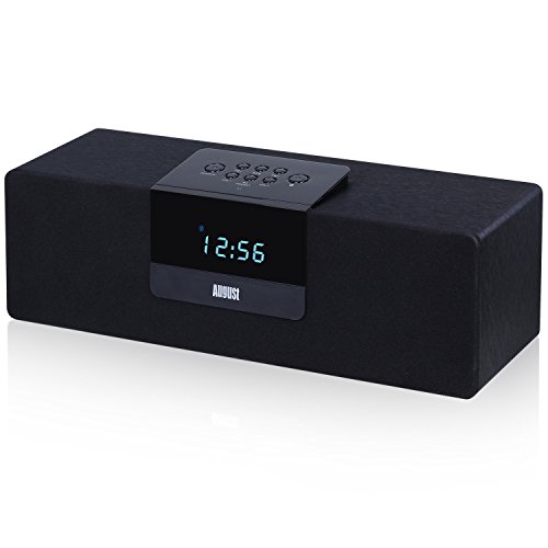 August SE50 - Home Bluetooth Speakers with FM Radio - Bluetooth Stereo System / 3.5mm Laptop Speaker - Black