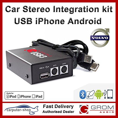 Grom Audio (USB3) USB Android iPhone car stereo integration kit for Volvo 2001-2006 HU Stereos - supports Apple Lightning connector. S40 V50 S60 S70 V70 S80