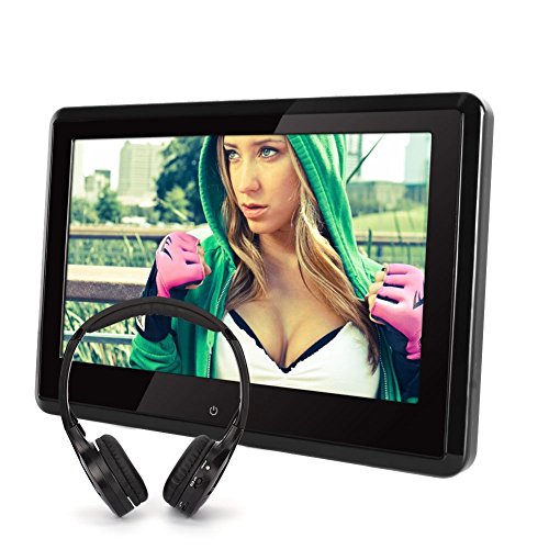 NAVISKAUTO Full HD Car DVD Player 10" Touchscreen Wide View LCD Multimedia Monitor Support HDMI 1080P FM/IR/USB Include AC Plug Home Power Wireless Headphones (CH1004S)
