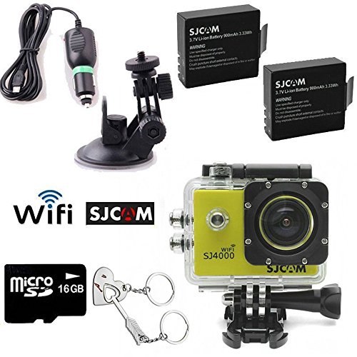 Blueskysea Free Gift+ 16GB SJCAM SJ4000 Wifi Sports Helmet Camera DVR+Free Battery+Car Charger/Bracket (Yellow)