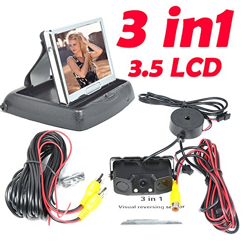 All images of BW New 3 in 1 Sound Alarm CCD HD Car Reverse Backup LED Rear View Camera Parking Video Radar System + 3.5" inch TFT LCD Foldable Monitor