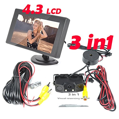 BW New 3 in 1 Sound Alarm CCD HD Car Reverse Backup LED Rear View Camera Parking Video Radar System + 4.3'' Color TFT Car Monitor Support 480 x 272 Resolution