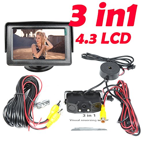 BW New 3 in 1 Sound Alarm CCD HD Car Reverse Backup LED Rear View Camera Parking Video Radar System + New 4.3'' Color TFT Car Monitor Support 480 x 272 Resolution
