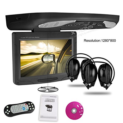 XTRONS 11" Overhead Car DVD Player Roof Flip Down with Swivel HD Screen USB FM Game Disc IR Headsets(Color Optional) (Black)